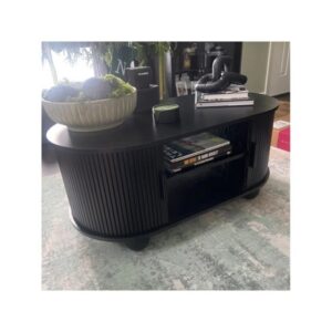 Black Oval Fluted Single Coffee Table with Storage