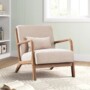 This armchair brings a casual, coastal aesthetic to your bedroom or living room. It has a kiln-dried wood frame with a brown finish, and it sits on splayed legs for a mid-century modern look. This chair is upholstered in linen-blend upholstery with a solid hue, and it's purposefully distressed for a vintage feel. Foam-filled cushions offer extra padding as you read or relax, and its pillow-back and square arms provide plenty of support. Best of all, this chair includes one toss pillow for an instantly curated look.