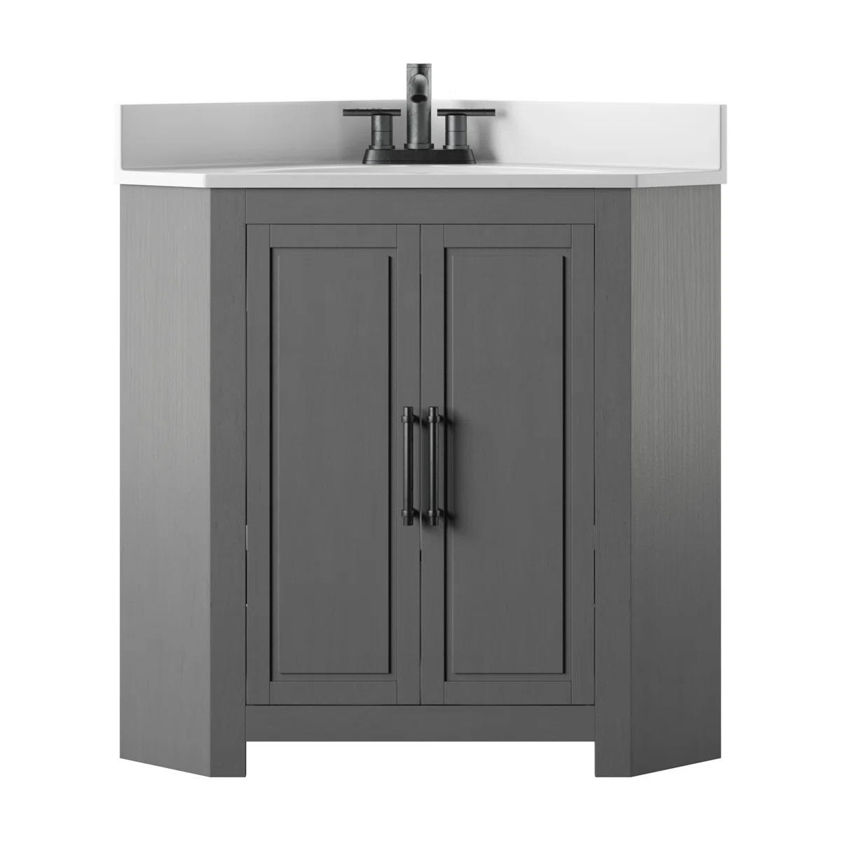 If you need a space-saving solution for your bathroom storage, this corner vanity is just the ticket. The traditional style features double cabinet doors while a corner design easily fits into the smallest of powder rooms. An adjustable interior shelf offers flexible storage and is just the right size for items like hand towels, mouthwash, or other toiletries. Best of all, this vanity arrives already assembled, so you can get back to the things that matter.* *Please note, a faucet is not included with this vanity