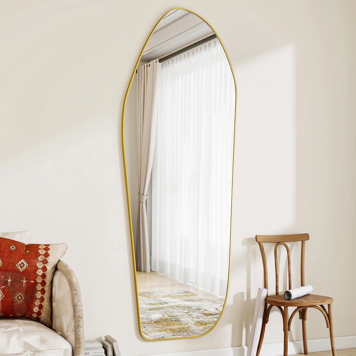This diamond-shaped floor mirror artfully combines style and functionality. Crafted with premium aluminum frame and weighted base for optimal stability, it features 3mm safety glass that delivers crystal-clear reflection. Available in sophisticated black/gold finishes, it's perfect for bedrooms, dressing rooms or living spaces, adding a touch of modern elegance to any interior.