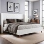 Foam–padded, vertically channel–tufted wingback headboard for extra comfort