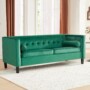 A classic tuxedo silhouette and luxe elements make this upholstered sofa an eye-catching glam piece for your living room. It has a solid and engineered wood frame that rests on low-profile tapered dowel legs with a warm brown finish. Wrapped in velvet, this couch is filled with foam and polyester over pocket springs for ample support. Button tufting and piped edges round out the look. Two bolster pillows are also included for another layer of comfort.