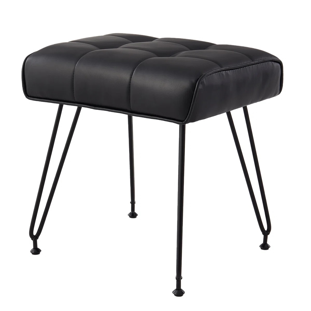 Elevate your vanity space with our stylish upholstered vanity stool! Crafted with premium PU leather, it adds a luxurious touch and is easy to clean. The tufted seat cushion provides exceptional comfort while you get ready for the day or wind down at night. Supported by four sturdy iron legs with adjustable, non-slip foot pads, this stool remains stable on any surface while protecting your floors. With a weight capacity of 350 pounds, this durable and chic stool is a perfect addition to your bedroom or dressing area.
