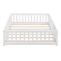 Floor Bed with Safety Guardrails: The toddler's floor bed, positioned close to the ground with surrounding solid wood safety guardrails and a low-profile design, ensures enhanced safety within their sleeping environment.