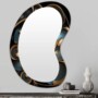 We proudly brings you our exclusive collection of asymmetrical glossy aluminum metal art featuring an embedded asymmetrical glass mirror. This striking piece seamlessly combines modern artistry with functional design, creating a visually captivating centerpiece for any space. The irregular shape with a high-gloss finish that radiates sophistication and contemporary charm. Its reflective surface plays with light, adding depth and dimension to your room. Pasted onto this stunning metal art is an asymmetrical glass mirror, perfectly complementing the abstract design while offering a practical reflective surface. Ideal for entryways, living rooms, desks, expansive feature walls, or a mirror for the bathroom. this piece effortlessly draws attention and becomes the focal point of your decor. The combination of glossy aluminum and sleek glass creates a harmonious blend of textures, balancing boldness with elegance.