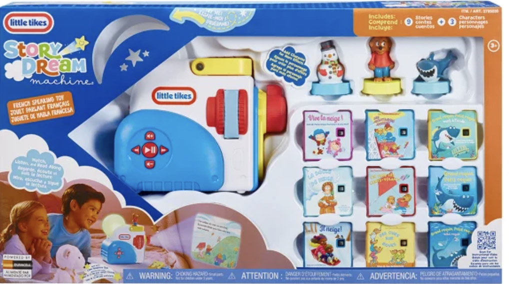 - Little Tikes Story Dream Machine™ Winter Edition includes Snowy Day collection, The Berenstain Bears™ Adventures collection, Big Shark, Little Shark collection