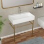 This sleek 35'' tall console sink can bring a touch of retro from the bathroom to kitchen and beyond. It provides more storage space. Glossy ceramic is dirt resistant and easy to clean. Maintain excellent performance over the next few years. Sturdy lacquered steel legs provide stable support.
