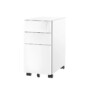 Organize your office supplies and folders in style, with this 3-drawer file cabinet featuring a slim and contemporary design that enhances any office space. With a large storage capacity, the bottom drawer accommodates letter, legal, and A4 size folders, providing you with plenty of room to organize and store your important files. It extends fully allowing you easy access to your folders. The top drawer of the file cabinet includes an adjustable pencil tray, allowing you to keep your writing utensils neatly organized and easily accessible. No more searching for pens or pencils! All drawers open and close smoothly and quietly and the hidden drawer pulls give the cabinet a seamless and clean look. Our file cabinet is designed to save space, making it an ideal choice for both corporate and home office environments. Its compact size allows it to fit seamlessly into any office layout. Crafted from high-quality steel, our file pedestal is built to withstand the demands of daily use. It features a sturdy and durable design and is equipped with 360° swivel wheels for easy mobility and accessibility. Keep your belongings safe and secure thanks to the built-in lock. You can have peace of mind knowing that your confidential documents and valuable items are protected. For added safety and accident prevention, only one drawer can be opened at a time and the additional front wheel prevents the unit from tipping.