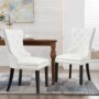 "A beautiful faux leather dining chair to decorate a cozy home."2pcs Dining Chair Button Tufted Padded Kitchen Chair Tall Back Dining Room Side Chair with Solid Wood Legs.Make every long-time sitting comfortable. The dining chair is constructed with a solid wood frame, decent size seat, and tall backrest. Durable leather seats filled with extra high-density foam and decorated with button tufting on the back. Simple style and elegant colour perfectly fit your unique space and atmosphere.