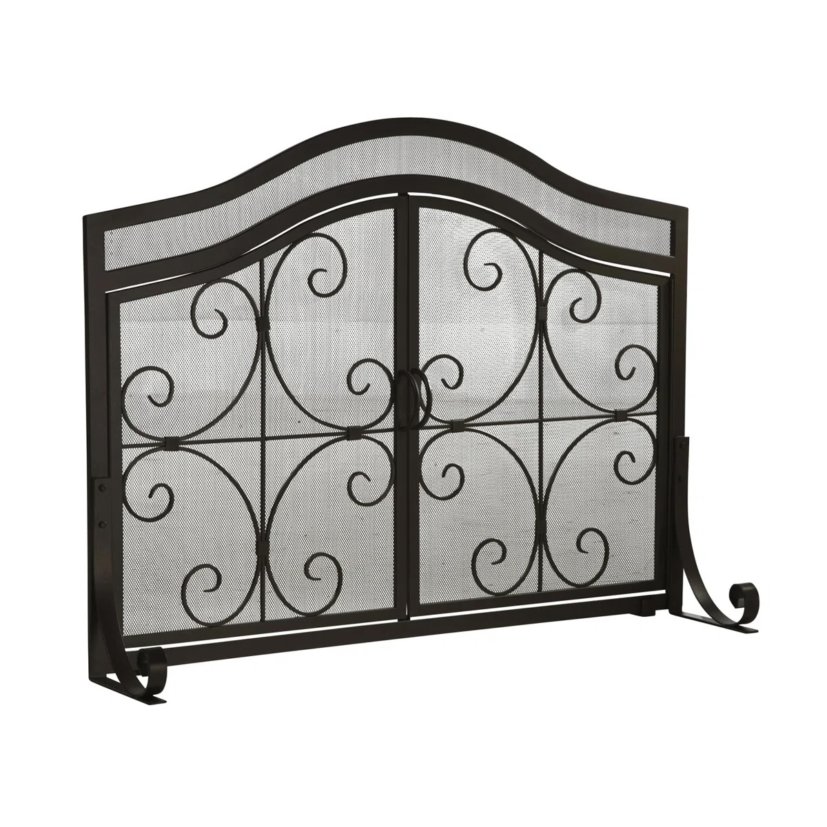 Ornamental scrollwork in solid wrought iron sets our exclusive Small Crest Fireplace Screen with Doors, each quality-crafted piece has a powder-coat base with hand-burnished accents that add a shimmer to your hearth, with or without a fire.