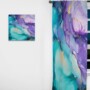 Bring a breath of fresh air to your windows and spruce up any space in your home with this Turquoise and Purple Liquid Art III curtain. This beautiful Modern curtain is handmade on demand just for you.The fabric is composed of 270 gsm polyester faux linen fabric, making this Turquoise; Purple curtain completely machine-washable for easy care. The design is printed using the highest quality eco-friendly fade resistant ink and the delicate stitching entirely hand-sewn by one of our expert seamstresses. These are decorative and room darkening curtains. They will darken the room when closed.