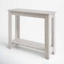 Bring functionality to your home with this Modern Classic Console Table, a versatile accent piece designed for both living room and bedroom spaces. Crafted in a modern classic style with four straight legs and tapered feet, this elegant side table offers a timeless look that complements contemporary or traditional décor. The smooth tabletop supports up to 15 lbs, ideal for displaying lamps or décor while the open lower shelf supports 11 lbs for baskets or books. Available in White, Black, Brown, Gray, and Beige finishes, it includes QR video assembly instructions for quick, effortless setup.